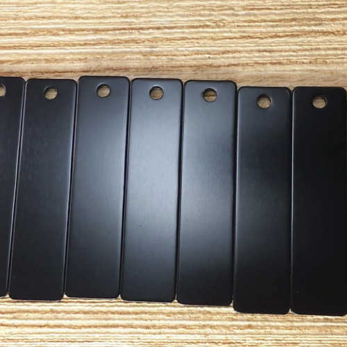 ABBECIAO 2" x 1/2" Black Anodized Aluminum Rectangle Blanks Metal Keychain Tags with One Hole for Hand Stamping and Engraving Necklace Bracelet Pet ID Dog Tags Making